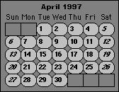 1997 Calendars: [January] [February]-- [April] [May] [June] [July]