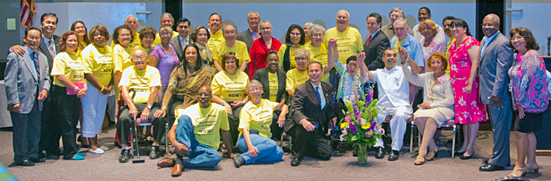 (Below) President Kanji Sahara introduced our 2010 Committee Chairs. From the left, Membership Chair Richard Vaughn, Health Care Chair Alan Constantino, Ways & Means and also Newsletter Chair Don Dear, Hospitality Chair Alicia Brewster, President Sahara, Senior Citizens Chair Bea Bernstein, Legislative Action/Resolutions/Consumer Affairs Chair Paulette Francis and Publicity Chair Dan Medina. Not in the photo are Sunshine Chair Doris Griffin, Program Chair Al Hernandez, Precinct Organization Chair Ron Shimokaji and Website Committee Chair Jim McGreevy, who took the photographs. All of our Committee Chairs, along with our club officers, make up our Executive Board.